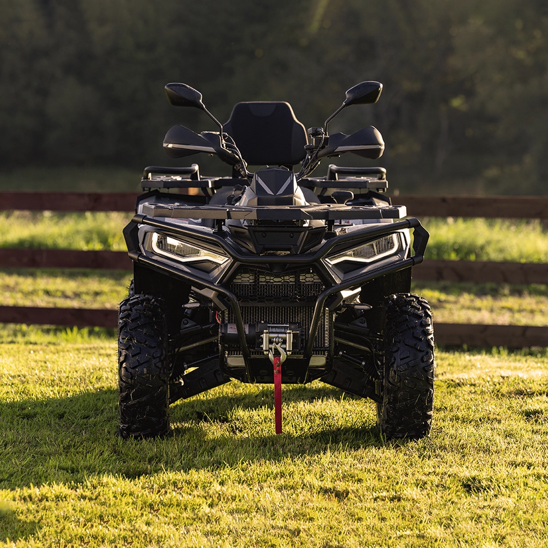 Gracias a su transmisión automática con tracción 4×4 y su sistema de suspensión de alto desempeño, esta cuatrimoto garantiza estabilidad, fuerza y maniobrabilidad, sin sacrificar comodidad ni estilo. Una máquina versátil que se adapta a cualquier desafío.
